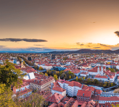 Rendez-vous au pied des Alpes. Graz est la seconde ville d’Autriche, et la capitale de la région de Styrie! Cette perle verte est un step à caler dans votre séjour si vous avez envie de voir autre chose que seulement Vienne. Elle a réussi à allier beauté naturelle et engagements écologiques, et chez FairMoove ça nous plaît beaucoup ! La métropole séduit par son patrimoine culturel très riche, sa vieille ville classée au patrimoine mondial de l’Unesco et sa bonne conduite environnementale. Sans oublier son terroir viticole et gastronomique bien évidemment! Ce match parfait offre avec symbiose une dynamique inégalée entre histoire, urbanisme et nature. Précurseure en matière d’écologie, elle incarne un mindset contemporain et sooo green ! Les immenses parcs, les jardins luxuriants et les kilomètres de pistes cyclables vous font assez vite perdre la notion d’hyper-centre. Les investissements écologiques de Graz touchent toutes les thématiques sociales actuelles, autant sur les énergies renouvelables que sur l’éducation. Mais cette ville est aussi sous le feu des projecteurs pour ses trésors architecturaux comme le château baroque d'Eggenberg et la forteresse de Schlossberg. Côté musées, l’ex-capitale européenne de la culture de 2003 n’est pas défavorisée grâce au Musée d'Art moderne « Kunsthaus Graz », et l’Arsenal qui expose la plus grande collection d’armes historiques au monde ! Ensuite, Graz vibre toute l’année avec ses festivals comme celui de Styrie d'automne (« Steirischer Herbst »), le Festival de Diagonale dédié au cinéma, et le Styriarte Festival qui fête la saison estivale. Désignée par ses voisines comme la capitale des délices culinaires, la cuisine traditionnelle autrichienne est, sans aucun doute, excellente à Graz ! Accompagnez les plats typiques de bon vin local et le tour est joué ! Pour les noctambules, le « triangle des Bermudes de Graz », autrement dit les quartiers de Glockenspielplatz, Färberplatz et Mehlplatz, satisferont toutes vos envies. Avec les six universités de la ville, la fête et les étudiants ne sont jamais bien loin. Bref, vous risquez bien de rentrer de votre séjour à Graz surpris par ses trésors. Moins touristique que Vienne, Salzbourg ou encore Innsbruck, c’est la pause idéale pour un city-break original, à l’autrichienne !