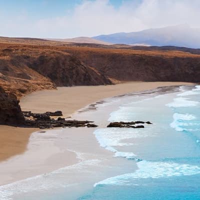 Fuerteventura est une destination privilégiée pour les surfeurs, véliplanchistes et kitesurfeurs. Il faut dire que les rencontres entre le vent et la mer sont très (très) fréquentes. La plupart des spots de surf de Fuerteventura se trouvent au Nord. L’un des plus incroyables est sans doute Shipwreck, une magnifique baie dans laquelle repose l’impressionnante épave du SS American Star ! Rassurez-vous, si vous êtes plus « chill » que « sports nautiques », l’île a 77 plages, où l’on peut, à sa guise, se dorer la pilule ou se jeter à l’eau. Située dans la péninsule de Jandía, celle de Cofete est connue pour être la plus belle.