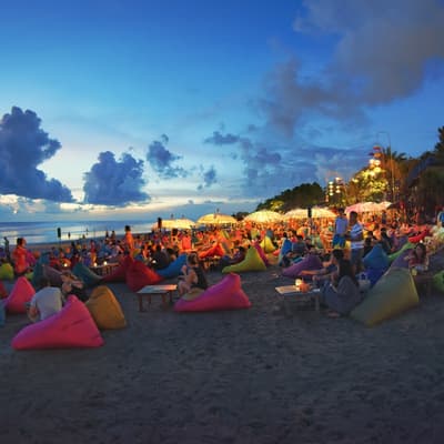 - C'est quoi / Où ? Plage de 3 km de sable doré sur la côte sud-ouest de Bali. Ambiance chic avec des beach clubs haut de gamme et des couchers de soleil spectaculaires.