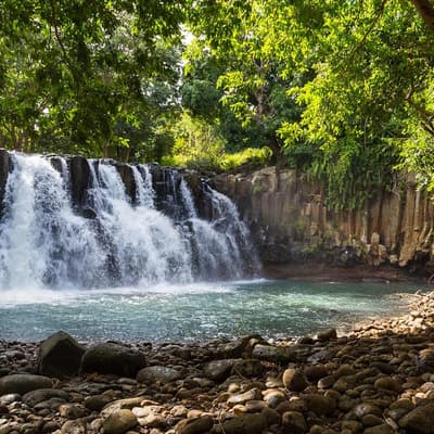 La cascade Rochester Falls mesure exactement 10 mètres de haut sur 15 mètres de large, ce qui en fait la cascade la plus large de l'île Maurice. Ses colonnes basaltiques rectangulaires créent un mur naturel spectaculaire où l'eau de la rivière Savanne plonge en créant un bassin naturel profond. Ces formations rocheuses, sculptées par l'érosion, offrent différents angles de vue selon votre position. Vous pouvez admirer ces orgues basaltiques depuis le pied de la cascade ou depuis les rochers situés sur les côtés.