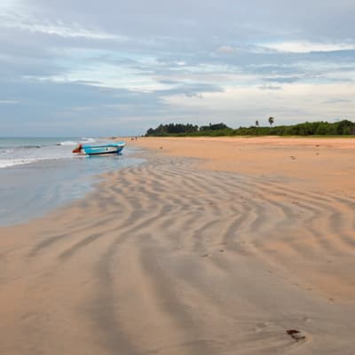 Rekawa se situe à environ 200 km au sud de Colombo, dans le district de Hambantota. Pour vous y rendre, consultez nos conseils de transport. L'accès s'effectue en tuk-tuk, scooter ou véhicule privé depuis Tangalle, ville portuaire la plus proche. Le scooter permet d'explorer librement les plages sauvages et villages alentour à son rythme. À proximité, sur la même côte sud, la plage de Galle offre un cadre côtier tout aussi remarquable avec son fort historique.