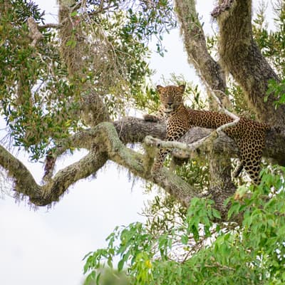 Les prairies pelessa constituent l'habitat de chasse privilégié des léopards. Ces espaces ouverts facilitent l'observation depuis les véhicules de safari. Les léopards utilisent également les arbres pour se reposer et surveiller leur territoire, offrant des opportunités photographiques exceptionnelles.