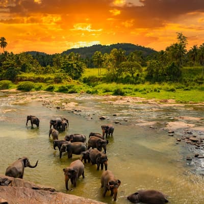 L'orphelinat de Pinnawala, fondé en 1975 par le département de conservation de la faune du Sri Lanka, abrite aujourd'hui 71 éléphants sur 24 acres. Ce site s'étend sur une plantation de cocotiers adjacente à la rivière Maha Oya. L'établissement héberge le plus grand troupeau d'éléphants en captivité au monde, avec 30 mâles et 41 femelles de 3 générations différentes.