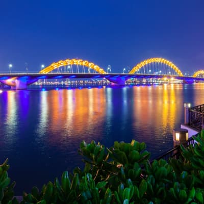 Da Nang est la ville côtière la plus dynamique du centre du Vietnam, située stratégiquement entre Hanoi au nord et Hô Chi Minh-Ville au sud. Cette destination phare du centre du pays abrite des plages de sable blanc exceptionnelles, de superbes montagnes de marbre et une infrastructure touristique développée. La ville donne accès aux sites emblématiques de la région, du pont du Dragon et ses spectacles de feu aux temples cham anciens nichés dans les montagnes.