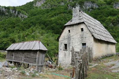 La matinée est dédiée à l’exploration des alentours. Après une balade jusqu’à l’église, visitez l’une des dernières tours d’isolement qui subsistent, vestige d’une époque révolue. Selon le Kanun - code coutumier ancestral - quiconque faisait l’objet d’une vendetta pouvait s’y réfugier... Votre chemin se poursuit jusqu’à la cascade de Grunas. Vous y pique-niquez au bord de l’eau, avant de reprendre la marche en direction de l’Œil Bleu, une source naturelle à l’eau turquoise. Entourée de roches et de verdure, c’est l’occasion idéale d’une baignade en pleine forêt ! Dîner et nuit en gîte.