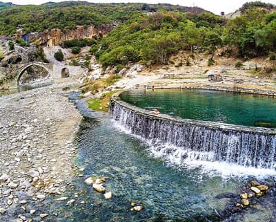 Départ en direction de Strembec pour une randonnée dans le massif de Nemercka. Pique-niquez au bord de la jolie cascade de Sopot avant de rejoindre les sources de Benjë, véritables piscines naturelles. Derrière le vieux pont ottoman qui les surplombe, on devine l’impressionnant canyon de Langarica. Le cadre est idéal pour une baignade à la tombée du jour ! Séchez-vous au coin du feu avant que les premières étoiles n’apparaissent... Dîner et nuit sous tente, en camping.