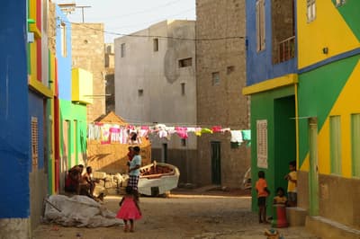 Salamansa est un village de pêcheurs sur l'île de Sao Vicente. L'économie de l'île repose en majeure partie sur la pêche et le tourisme. Certains quartiers de Salamansa font le bonheur des voyageurs grâce à leurs rangées de maisons aux couleurs pastels. Peindre les façades de toutes les couleurs, dans ce paysage aride, est une tradition des pêcheurs qui leur permettait de repérer leur maison depuis l'océan. Malheureusement, les populations des quartiers moins favorisés n'ont pas les moyens de s'offrir une devanture colorée. Ainsi, au-delà de ternir le quotidien des habitants, les quartiers monochromes n'attirent pas les voyageurs qui génèrent toujours des retombées économiques significatives à leur passage.