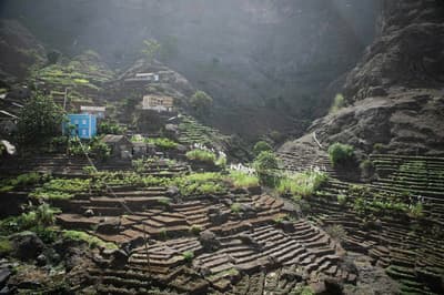 Vous continuerez votre découverte itinérante de la vallée de Ribeira Grande en redescendant doucement vers la civilisation, serpentant au cœur des nombreux villages éparpillés et des cultures dans cette partie très fertile et agricole où l’on distille le rhum. Petits sentiers et canaux d'irrigation utilisées comme voie d'accès vous permette de rejoindre enfin Ribeirao où vous installerez le camp sur une terrasse pour une dernière nuit sous les étoiles et au milieu des champs de Santo Antão.