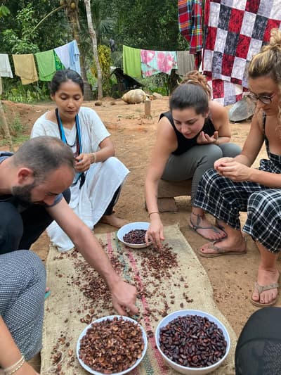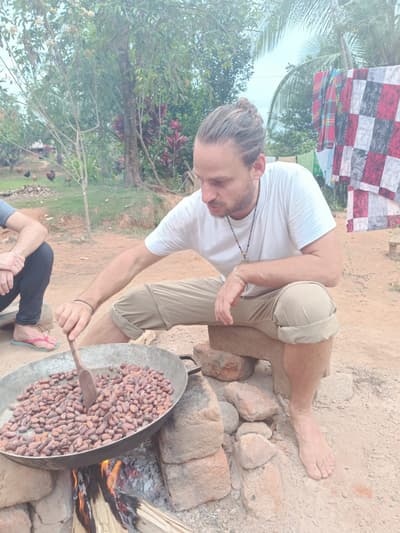 En fin d’après-midi vous participez à un cours de cuisine orchestré par vos hôtes qui proposent une expérience immersive de cuisine végétarienne et locale. Leur atelier met en avant des produits de leur propre jardin agroforestier et une approche respectueuse de l’environnement. Carmen et Leo vous enseignent ainsi comment préparer des plats à base d’ingrédients frais, cultivés sur place ou achetés auprès des pêcheurs et producteurs locaux. Diner avec vos hôtes puis nuit en cabane.