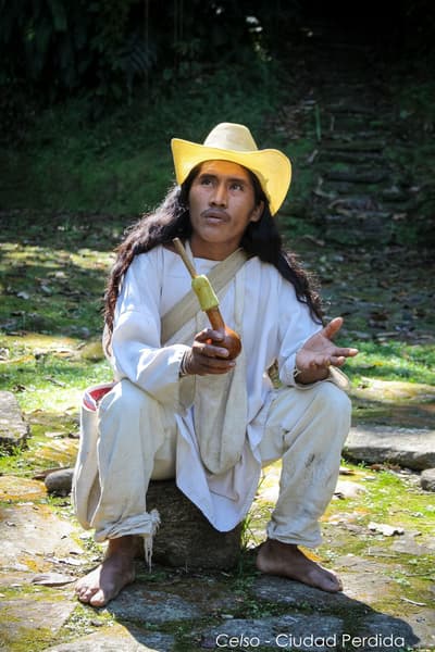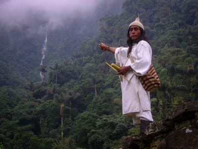 Départ de Santa Marta, la ville la plus ancienne de Colombie, en direction de la mystérieuse Cité Perdue ! Cette région, considérée comme un sanctuaire naturel, dévoile à chaque pas une biodiversité exceptionnelle. Les chants des oiseaux tropicaux, les bruissements des feuilles sous le vent et le parfum des fleurs sauvauges composent une véritable symphonie naturelle qui accompagneront votre marche les prochains jours. Arrivée en véhicule privatisé depuis le secteur d’Aguacatera puis départ en 4x4 jusqu’à celui de Mamey. Arrivée à Machete Pelao où vous faites une pause pour le déjeuner. Après le repas, vous entamez votre randonnée avec une première marche de 7,6 km et arrivez au premier camp à la Cabaña de Adán, située au sein d’une communauté paysanne, lieu de repos pour la nuit. En chemin, vous faites une halte pour profiter d’un bain rafraîchissant dans une rivière aux eaux cristallines. La durée du trek varie en fonction de l’aptitude de chacun à marcher (la difficulté n’est pas ici l’altitude mais l’endurance sous une chaleur tropicale donc humide) : certains peuvent le compléter en 3 heures, tandis que d’autres prennent jusqu’à 5 heures. En soirée, votre guide local partage des récits fascinants sur les traditions et coutumes de sa communauté, tout en vous enseignant quelques phrases en langue dumana. Repas inclus. Nuit en dortoir ou en hamac équipé d’une moustiquaire, selon disponibilité.