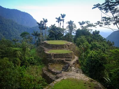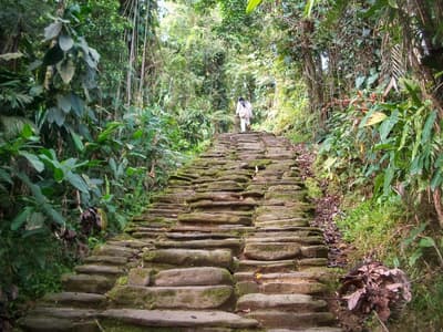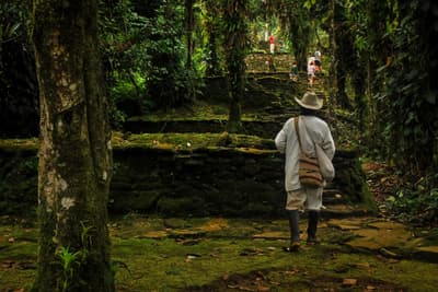 Vous débutez la journée de bonne heure, impatients de partir à la découverte de la légendaire Cité Perdue ! Pour atteindre ce site sacré niché au cœur de la Sierra Nevada de Santa Marta, il vous faut gravir 1 200 marches construites par l’ancien peuple Tayrona. Ces escaliers, entourés de végétation luxuriante, témoignent du génie architectural de cette civilisation disparue et ajoutent une dimension spirituelle à votre ascension. Une fois au sommet, vous êtes récompensé par la majesté de la Cité Perdue, une véritable merveille où la nature et l’histoire s’entrelacent harmonieusement. Les terrasses circulaires, les sentiers anciens et les vestiges des habitations offrent un aperçu de la grandeur passée de ce centre spirituel et commercial des Tayronas. Si vous avez la chance de croiser le «mamo», autorité spirituelle indigène, il enrichira notre visite en en partageant des récits fascinants sur sa culture, les légendes locales et, peut-être, quelques sages conseils. Après ce moment hors du temps, marche retour vers le campement.