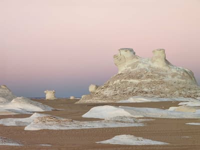 - Le Désert Blanc, célèbre pour ses formations de craie sculptées par le vent, créant un décor irréel aux formes étonnantes.