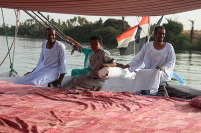 Accompagnement : guide local francophone, équipage de la felouque avec cuisinier