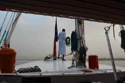Hébergement : nuit sur felouque traditionnelle. Vous dormez sur un matelas étendu de la proue à la poupe (couvertures fournies). À chaque étape, des tentes sont installées sur les berges pour les sanitaires (WC et douche au seau).