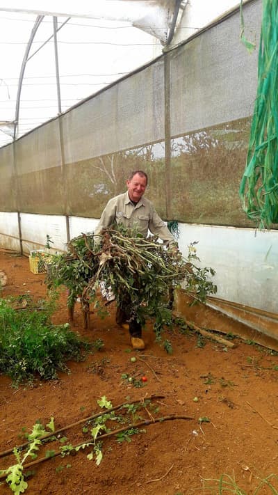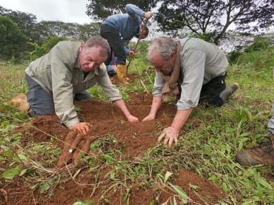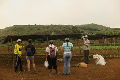 Afin de protéger la biodiversité unique de l’île, vous prenez part à un projet agricole en collaboration avec une coopérative d’agriculteurs qui partagent ses matinées avec vous dans les champs.
