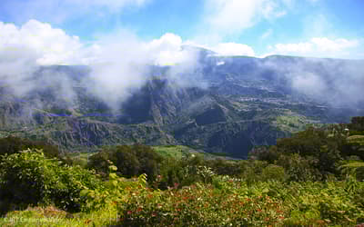 Randonnées possibles dans le Cirque de Salazie et redescente ensuite sur la Côte-Est pour rejoindre les hauts de Sainte Anne avec une vue imprenable sur l'Est de l'île où vous pourrez observer les biches se promenant en toute liberté dans le parc.