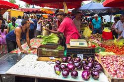 Après le petit déjeuner, nous sommes conduits à Saint-Paul. Cette ville abrite, sur son front de mer, l'un des marchés les plus importants de l'île, un véritable festival de parfums et de couleurs. C'est ici que nous allons à la rencontre d'une cuisinière réunionnaise qui, en l'espace de quelques heures, nous livre les secrets d'un plat typique de l'île : le cari. Avec son aide nous nous lançons dans l'élaboration de cette recette qui se compose de riz, de grains (lentilles, haricots, poids du cap,...), de légumes, de rougail et d'épices. Une fois la préparation terminée, c'est avec un immense plaisir que nous dégustons les fruits de notre travail avec pour accompagnement, la boisson locale : le punch... Un vrai régal pour les papilles !