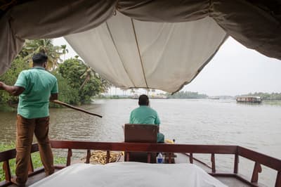 Vous profitez d'un petit-déjeuner au calme au milieu des backwaters. Dans la matinée, vous embarquez à bord d'un kettuvalam pour vous aventurer sur des canaux plus éloignés de la ville. Ces anciennes barges à riz, converties en maisons flottantes, sont réalisées traditionnellement en planches de bois liées par des cordes en fibres de coco, recouvertes d'un toit en bambou et de feuilles de palme. Laissez vous lentement dériver au rythme cette de cette invitation à la contemplation dans ce petit coin de paradis. Vous savourez votre déjeuner et votre dîner en ravissant vos papilles avec les délices typiques du Kérala. Nuit sur le bateau.