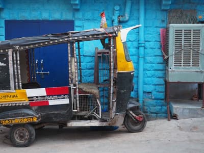 Au petit matin, vous partez pour une rando facile dans les collines qui surplombent la ville. Une fois au sommet, vous admirez le lever de soleil sur Pushkar et le désert environnant. Après cette vision apaisante, vous redescendez pour prendre la route de Jodhpur, la ville bleue. Laissez-vous séduire par le charme hétéroclite né du contraste entre la vieille ville, où s'enchevêtrent des ruelles aux maisons bleues, et la nouvelle ville, qui vous déploie ses larges avenues. Vous découvrez le Fort de Mehrangarh qui domine la vieille ville de Jodhpur. Considéré comme le fort le plus splendide du Rajasthan, qui en compte pourtant de nombreux, Mehrangarh vous offrira une plongée dans le passé royal de la cité. Vous vous promenez ensuite dans les pittoresques marchés locaux entre les montagnes d'épices qui embaument l'air, les étals de saris chatoyants et les stands des artisans locaux. Nuit en chambre d’hôtes.