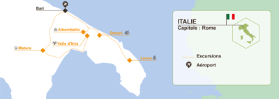 Après un dernier petit déjeuner, prenez la route pour l’aéroport de Bari et votre vol retour.