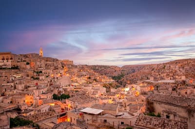 Route vers Matera, située dans la région de Basilicate, aux portes des Pouilles. À votre arrivée, partez à la découverte de cette cité spectaculaire et de ses « sassi », habitations troglodytes creusées dans la roche, formant un fascinant dédale de ruelles sinueuses. Capitale européenne de la culture en 2019, Matera est considérée comme l’une des plus anciennes villes habitées au monde. Une étape unique, incontournable et mémorable. Aujourd’hui, nous vous proposons une randonnée dans le Parc des Églises Rupestres, où nature et histoire se conjuguent harmonieusement. Explorez d’anciennes églises taillées dans la pierre, des grottes occupées depuis des siècles. En suivant les sentiers panoramiques, laissez-vous séduire par l’atmosphère envoûtante et intemporelle de ce site exceptionnel. Installation pour deux nuits dans un sasso.