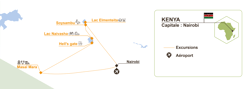 Partez pour une aventure itinérante et sauvage au Kenya, entre lacs scintillants de la Vallée du Rift, savanes infinies et terres ancestrales maasaï. Depuis Nairobi, vous rejoignez les rives paisibles du lac Elmenteita et les paysages grandioses de Hell’s Gate National Park, avant de naviguer parmi les hippopotames du lac Naivasha. L’aventure se poursuit au cœur de la mythique réserve du Maasai Mara, où safaris à la recherche des Big Five, rencontres authentiques avec les Maasaï et nuits en éco-camp sous le ciel étoilé africain promettent une immersion totale, rythmée par les grands espaces et la magie brute de l’Afrique de l’Est.