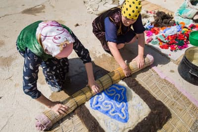 Au fil du voyage, vous traversez des paysages contrastés et spectaculaires : canyons aux allures lunaires, steppes infinies, vallées alpines et rives du lac Issyk Kul. Vous partez à la rencontre d’artisans passionnés qui perpétuent des savoir-faire ancestraux, de la confection des tapis en feutre shyrdaks à la fabrication des yourtes, sans oublier le komuz, instrument emblématique du pays.