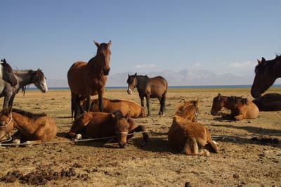 Vous quittez les alpages du Song Kul pour rejoindre les plages du lac Issyk Kul (6 heures de trajet). En chemin, vous visiterez des ateliers artisanaux : fabrication de tapis en feutre, construction de yourtes et visite d’une ferme de chameaux. Arrivée en fin d’après-midi au camp de yourtes Feel Nomad au bord du lac. Profitez de la baignade et des environs avant le dîner. Nuit sous yourte.