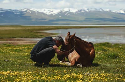 Aux côtés des semis-nomades, vous quittez le village à cheval pour une transhumance vers les steppes kirghizes, accompagnés du troupeau que vous aidez à guider.