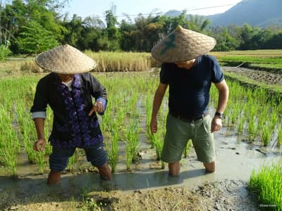 Petit-déjeuner à la guest house avant une matinée consacrée à la découverte des alentours (2h30 à pied sur terrain plat). En chemin, arrêtez-vous à la grotte de Tam Khang qui servait d’abri aux villageois pendant la guerre d’Indochine. Puis, enfoncez-vous plus encore dans la végétation luxuriante. Déjeuner au restaurant au bord de la rivière. Puis, vous rebroussez lentement chemin jusqu’au village entouré de rizières au creux des collines. L’après-midi est dédiée à la découverte de la vie locale : initiation au tissage, parties de pêche, récolte des légumes dans la forêt... Laissez-vous guider par vos hôtes, au rythme paisible de la campagne laotienne ! Dîner et nuit chez l’habitant.