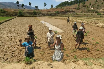 Vous êtes hébergés par une famille d'agriculteurs dans le village de Manandona, situé à 20 km au sud d’Antsirabe, au bord de la mythique RN7 dans la région de Vakinankaratra. C’est une vallée agricole réputée pour la culture rizicole et maraîchère. On y trouve encore quelques artisans qui tissent la soie sauvage car ici, les montagnes sont toujours recouvertes par des bois de Tapia dont les feuilles sont très appréciées des vers à soie !