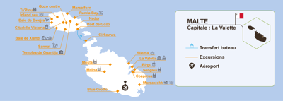 Trajet : environ 25min jusqu’à la basilique de Ta’Pinu, puis environ 15min vers la grotte de Mixta, puis environ 20min vers le port de Mgarr et environ 25min de traversée en ferry vers Malte