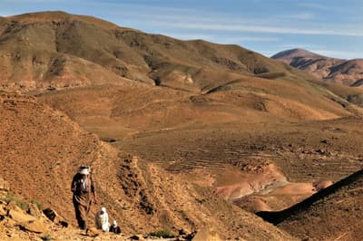Suivez la piste qui serpente à travers les montagnes de l’Anti-Atlas jusqu’au petit village de Tagmoute ! Au programme : préparation des repas avec les femmes, accompagnement d’un berger avec son troupeau, préparation du thé à la menthe dans le respect de la tradition, rencontre des agriculteurs de safran... De vrais beaux moments d’échanges à vivre dans un décor idyllique !