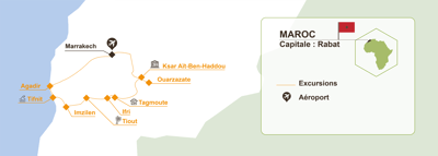+ Un itinéraire aussi riche que varié, à la découverte des paysages contrastés du Maroc. Des montagnes à l’océan, une bouffée d’air frais plus que bienvenue !
