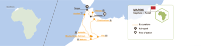 + La découverte des sites mythiques classés par l’UNESCO telles que Tétouan ou Fès ainsique les vestiges archéologique de Volubilis, témoins de la grandeur passée