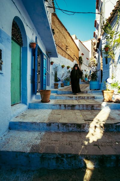 La journée démarre avec une visite, guidée cette fois-ci, de la ville ! Datant du VIIIe siècle, sa médina - classée par l’UNESCO depuis 1997 - figure parmi les mieux conservées du pays. Puis, cap pour Chefchaouen (1h30 de trajet). Déjeuner prévu en chemin, dans un petit restaurant au bord de la route. Reconnaissable entre toutes pour les mille nuances de bleu dont est recouverte sa médina, goûtez à l’atmosphère paisible qui s’en dégage à travers une promenade jusqu’à l’ancienne Kasbah surplombant la ville. À la tombée du jour, les façades s’illuminent tour à tour et confèrent à ce sublime décor une aura magique ! Dîner et nuit au riad.