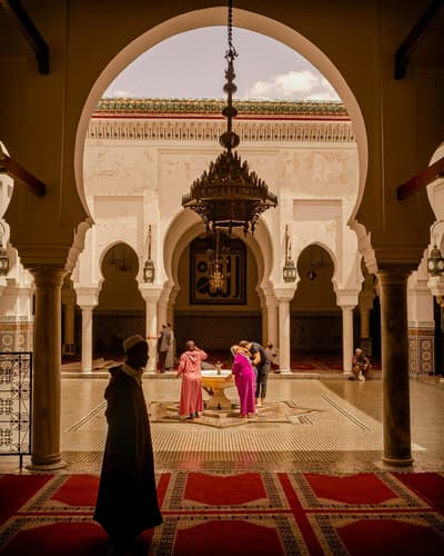 C’est parti pour une journée riche en surprises, à la découverte de la capitale spirituelle du royaume qui aura vu naître la toute première université religieuse du monde arabe ! Ne manquez pas non plus les célèbres tanneries ainsi que la prestigieuse école coranique de Boi Inania. Autrefois prisée par les Hommes de Lettres et de Sciences venus du monde entier pour en admirer la splendeur, celle qu’on surnomme la Reine du Maghreb n’a pas fini de vous surprendre. Remontez le temps au gré des minarets croisés en chemin et d’où s’élèvent inlassablement l’appel à la prière des muezzin, du IXe siècle à aujourd’hui. Déjeuner dans un restaurant de la médina. Dîner et nuit au riad.