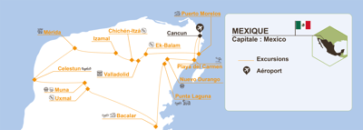 - Les sites archéologiques mayas d’ Ek Balam, Chichen Itza, Uxmal