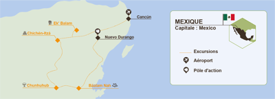 La péninsule du Yucatán, berceau du monde Maya, renferme des secrets d'une extraordinaire beauté. Dans les pas des anciennes civilisations, c'est à travers les yeux des communautés indigènes d'aujourd'hui que nous vous proposons de vous jeter dans l'aventure ! Explorez les monumentales cités de l'ère préhispanique de Chichén-Itzá et Ek Balam, relaxez vous dans les eaux turquoise le long du littoral caribéen à Bacalar, et pénétrez au cœur de la jungle tropicale avec les famille Mayas qui vous engagent à prendre part à leurs initiatives pour préserver leur héritage culturel et naturel.