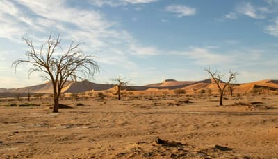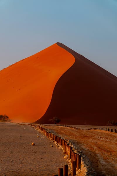 Petit-déjeuner à la guesthouse. Départ vers le canyon de Kuiseb, rivière très importante en Namibie puisqu’elle arrête la progression des dunes vers le nord. Continuation vers le sud en direction de Solitaire, renommée pour son Apfelstrudel, puis traversée de la réserve du Namib Naukluft pour rejoindre Sesriem (6h de trajet, 355km). Installation de votre campement à côté du lodge. nuits au campement sous tente de toit.