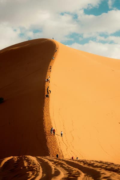 L’après-midi, vous profitez d’un moment de repos, le temps étant souvent chaud et venteux. Dîners préparés par votre guide et nuits au campement sous tente de toit. Repas inclus.