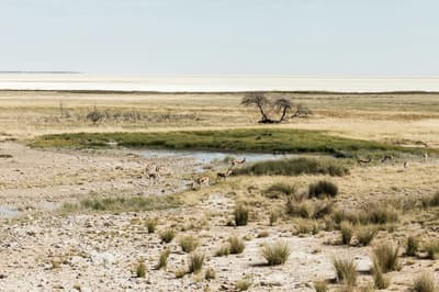 Petit-déjeuner libre au campement, puis départ vers les plaines d’Etosha pour une journée entière de safari avec votre véhicule. Etosha, le « grand espace blanc », tire son nom de la dépression d’Etosha Pan (qui signifie point d’eau asséché), une vaste dépression de 120 km de long sur 72 km de large. Dîner libre. Passez la nuit à l’Okaukuejo Camp, un hôtel idéalement situé devant un point d’eau où éléphants, antilopes et lions viennent se désaltérer.