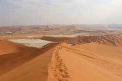 En route pour le désert du Namib ! La dune Elim constitue une halte parfaite pour une fin d’après-midi à votre arrivée à Sesriem. Accessible à pied depuis Sesriem, cette promenade vous permettra d’entendre le chant des geckos. En observant le sol, vous distinguerez leurs petits terriers où ils se cachent. Une fois au sommet de la dune, le spectacle est à couper le souffle : à l’ouest, un océan de dunes rouges, et à l’est, une vaste plaine aux teintes pastel, dominée par une impressionnante chaîne montagneuse.