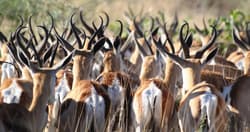 Au lever du jour, partez pour une balade guidée à travers la réserve privée de Gocheganas accompagné par votre guide local anglophone. Puis, vous prenez la route en direction de Rehoboth. Au 90ème kilomètre, vous franchirez le tropique du Capricorne avant d’entrer dans le « Nama land », un vaste territoire de brousse sèche parcouru par des rivières saisonnières. À l’est, le Kalahari dévoile ses majestueuses dunes rouges. Vous vous enfoncerez dans ce désert fascinant, où malgré l’aridité, une faune et une flore remarquablement diversifiées prospèrent. Composé d’étendues de sable brun, le Kalahari ne possède aucun lac permanent. Cependant, son climat semi-aride, marqué par des étés tropicaux et des hivers où le gel peut survenir la nuit, permet à de nombreuses espèces de s’y adapter. Certaines régions, recevant plus de 250 mm de pluie par an, abritent une végétation variée, allant de la brousse épineuse sahélienne aux acacias formant une strate arborescente. Seule la zone sud-ouest, avec moins de 175 mm de précipitations annuelles, est considérée comme véritablement aride. Les températures estivales oscillent entre 20 et 40 °C, avec une alternance entre la saison sèche et la saison des pluies. La faune y est riche : lions, hyènes, suricates et plusieurs espèces d’antilopes (dont l'oryx gazelle, le springbok ou encore le grand koudou) cohabitent avec une multitude d’oiseaux et de reptiles. Le Kalahari recense également près de 400 espèces végétales, dont la pastèque sauvage et le melon tsamma, tandis que les acacias dominent le paysage.