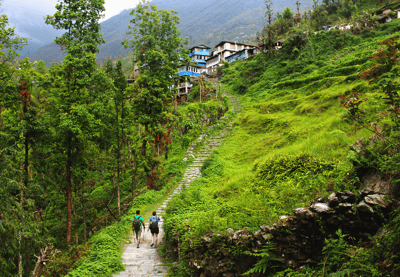 Réveil aux aurores pour vous rendre à Poon Hill et profiter du lever du soleil sur les montagnes. Aux premières lueurs du jour, un paysage unique s’offre à vous ! Vous retournez à Ghorepani pour un petit-déjeuner bien mérité avant de poursuivre votre chemin. En cours de route, vous vous arrêtez à Banthathi juste à temps pour déjeuner. Vous visitez Tadapani, au creux de ses forêts de chênes. Dîner et nuit en auberge.