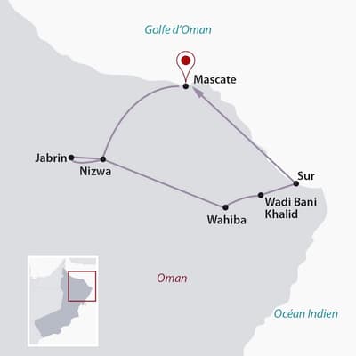 - Possibilité de séjour balnéaire à Mascate, ou Zighy Bay : nous consulter.