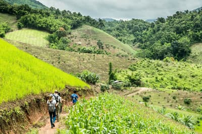 Aujourd'hui, vous reprenez la route vers Phrao (45km, 1h de trajet sur bonne route, puis 24km, environ 55 minutes en transport local sur piste), pour partir à la découverte des montagnes de la région et des villages reculés de la communauté Akha qui vit sur les sommets. Une fois arrivés au premier village, vous débutez une randonnée le long des petits sentiers qui bordent les cultures, s'enfoncent dans la forêt, puis dans la jungle. Vous dégustez un pique-nique et pouvez vous rafraîchir dans une cascade sauvage, avant d'arriver au prochain village (environ 6 km, 3h30 de randonnée, dénivelé positif 760 mètres). Après quelques déambulations et quelques rencontres avec les locaux curieux, vous êtes conduits jusqu'à une autre communauté Akha. Cette dernière vous accueillera pour les prochains jours, vous donnant ainsi l'opportunité de vous immerger complètement dans leur quotidien. Vous rencontrez la famille qui vous hébergent et partagez un premier dîner en sa compagnie. Nuit chez l'habitant.