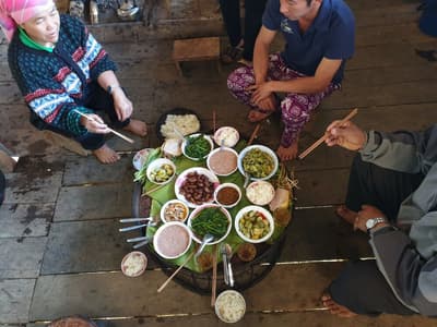 Dès le matin, vous allez à la rencontre d'une petite communauté vivant dans une vallée fertile de Chiang Dao. Vos hôtes vous accueillent avec une petite collation, et une initiation à la cérémonie "Mad Mue". Après une introduction au programme de la journée, vous commencez par une marche à travers la forêt, où vous découvrez comment les villageois vivent en harmonie avec la nature environnante. Vers midi, vous retournez au village pour le déjeuner. Si vous le souhaitez, vous pouvez aider à préparer les plats. Ensuite, partez explorer le village et échanger avec les habitants ! Selon la saison, vous êtes invités à participer aux tâches du village à leurs côtés. Après une journée riche en expériences, vous retournez à l'hôtel. Nuit à l'hôtel.
