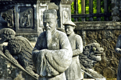 Arrivée à Hué. Petit-déjeuner sous forme de panier dans le train. Transfert à la pagode de la Dame Céleste en bateau sur la Rivière des Parfums, ainsi nommée car en automne, les fleurs des arbres fruitiers en bordure de la rivière embaumaient ensuite la ville de Hué. Vous poursuivrez votre découverte de l’ancienne cité impériale avec le tombeau de l’Empereur Tu Duc, construit entre 1865 et 1867 puis la Cité Impériale de Hué, classée au Patrimoine Mondial de l’UNESCO. Déjeuner et dîner dans un restaurant local. Nuit à l’hôtel.