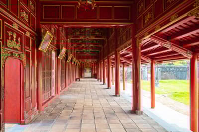 L’après-midi, explorez la Citadelle Impériale, construite en 1804 sous Gia Long, où vous admirerez l’architecture et les jardins tout en découvrant l’histoire de la cour royale. Achevez la journée par une visite à la pagode Thien Mu, l’un des plus anciens lieux de culte de Hué.